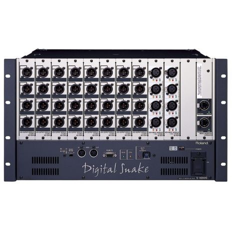 El rack modular 40Ch E / S configurado para ser utilizado en el frente de la posición de la Casa para la conexión a la consola de mezcla con cables XLRordinarios. Esta configuración se utiliza con un S-4000S–3208 en la posición de etapa